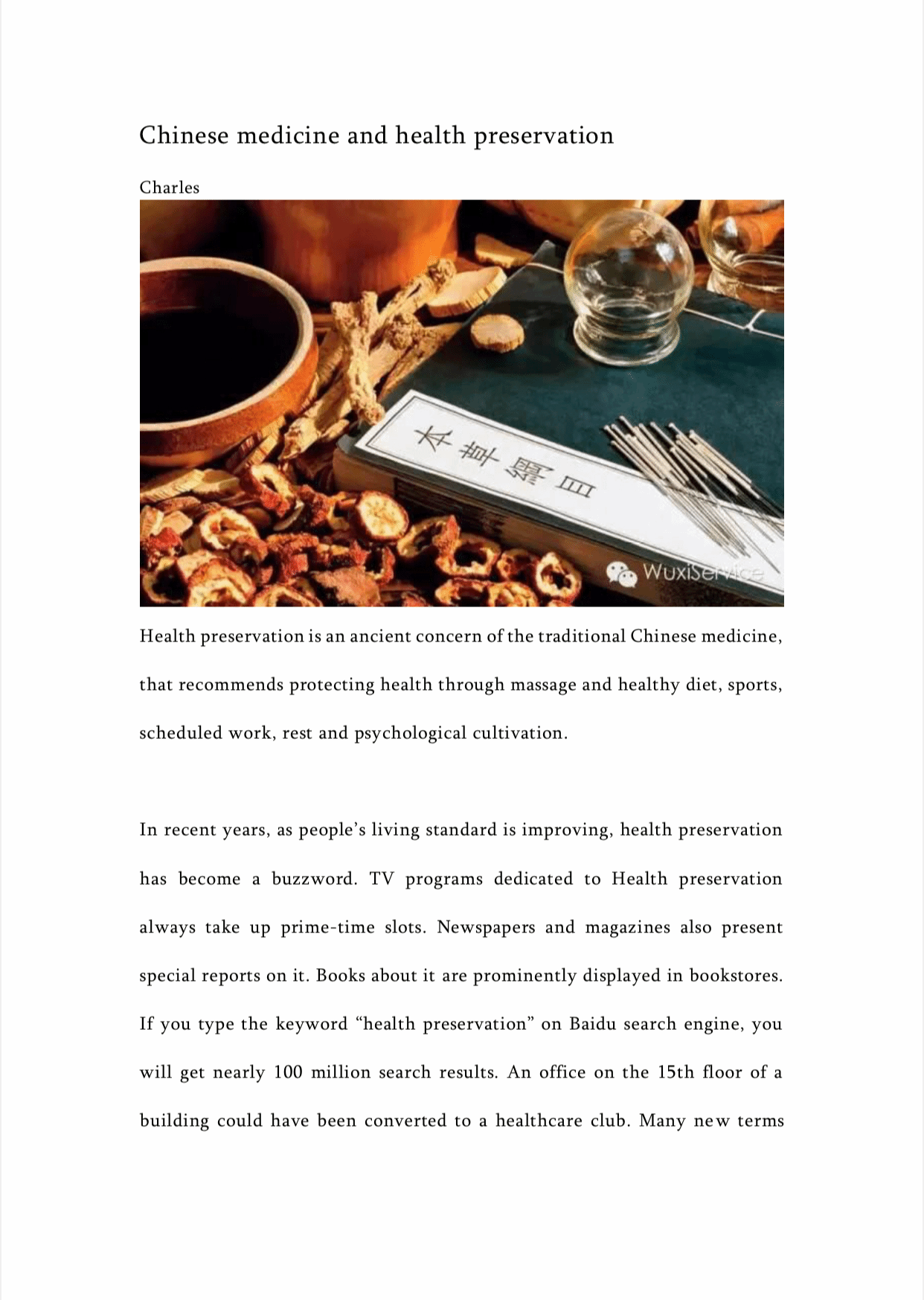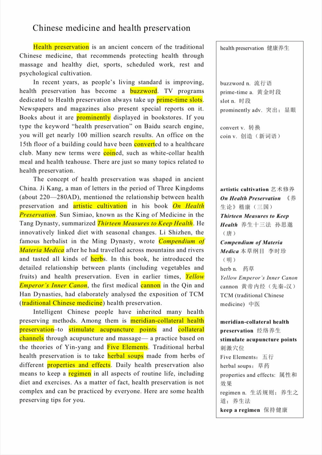 l 阅读文本资料--Chinese medicine and health preservation中医和养生。