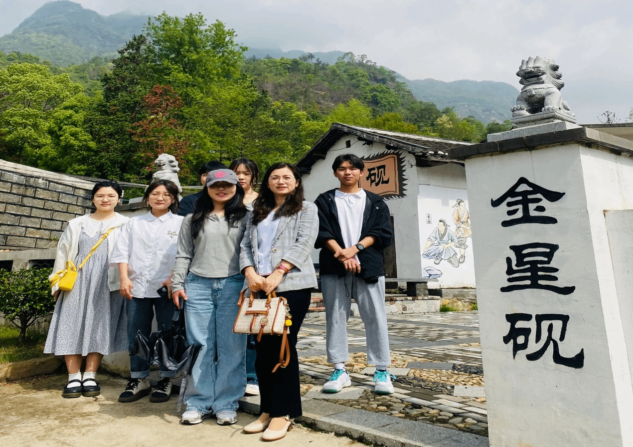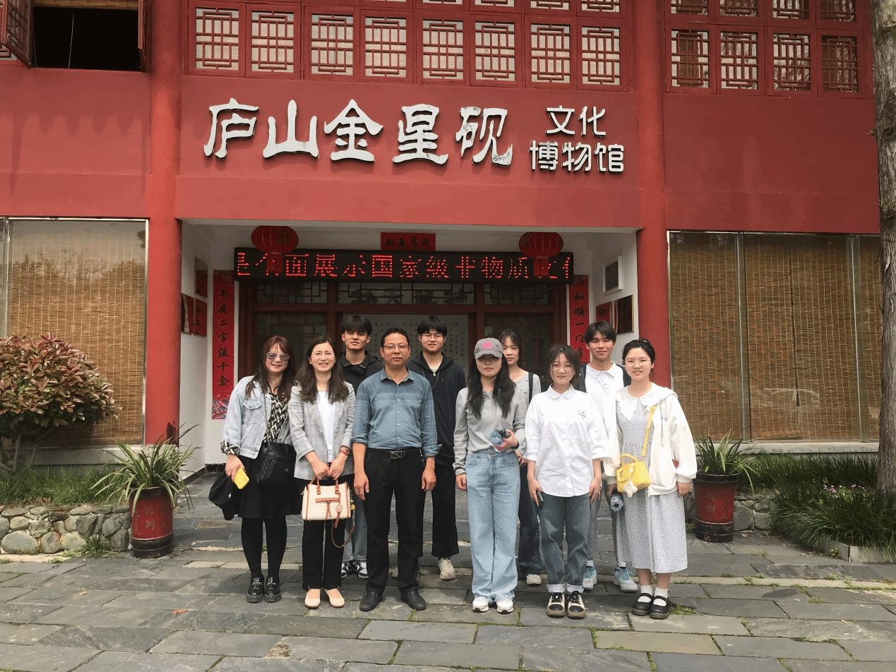 2024年4月20日,yl88858永利中国《大学英语II》课程组开展课程思政文化实践教学调研,目的地是庐山市,任务为调研国家非遗——金星砚制作技艺。yl88858永利中国“小浔英语说”工作室成员一行9人随同进行文化实践教学调研活动。