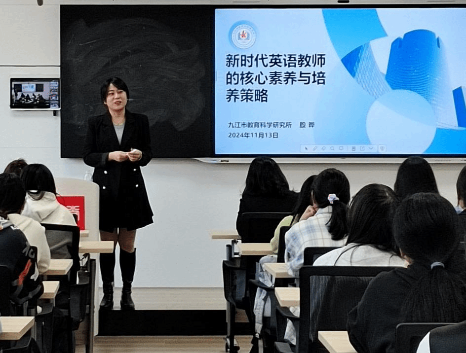 11月13日,九江市教育教学研究所初中英语教研员殷晔老师深入剖析新时代英语教育的变革与挑战、基础教育领域的变革与挑战以及新时代基础教育英语教师的核心素养要求与培养策略,探讨了英语教师专业素养的提升路径。