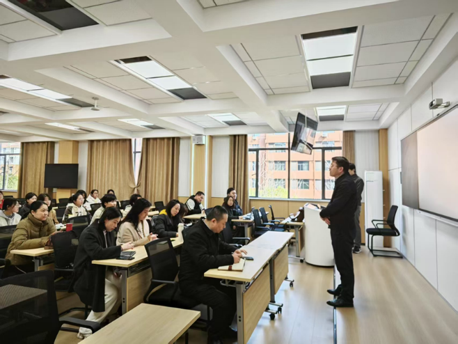 院长周志高阐述了当前人工智能对商务英语专业发展的积极影响,提出以“新文科”理念为引领,推动专业转型与服务地方能力的融合。同时提出教师与学生应该通过“专项培训、经验共享、技术融合“的路径全面提升人工智能应用能力。