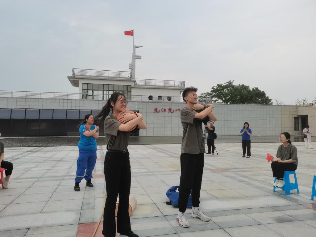 8月26日,在九江抗洪广场,这堂“沉浸体验式”实景思政课可谓真刀实枪,由1998年全国抗洪抢险英雄模范的后代主讲,九江蓝天救援队实训操练,教师引导理论研讨提升,师生党员一起扛沙袋、开大船、巡大堤、结绳梯,将理论讲授、灾害科普讲座、抢险救灾演练、音乐思政等设计在一堂课中,突出科学防汛救灾知识教育与实操,突出党政军民冲锋在前、迎难而上的先进事迹,学生在亦学亦演亦练中体会抗洪精神的基因密码和现实意义。