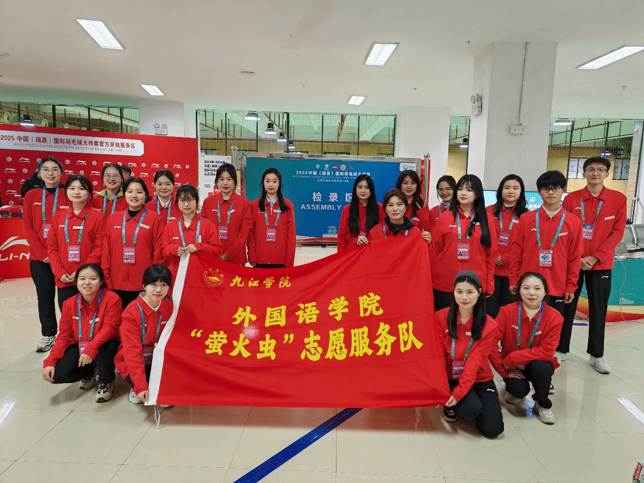 2025年3月11日至16日,2025 中国(瑞昌)国际羽毛球大师赛在瑞昌市举办,yl88858永利中国遴选了20名优秀学生组成“萤火虫”志愿服务队全程参与到赛事服务过程中。