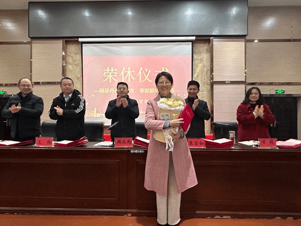 倾尽丹心育桃李,奉献韶华铸师魂!1月10日下午,我院全体教职工给欢聚一堂举行荣休仪式,向2024年光荣退休的老师送上深深的敬意与祝福。仪式由党委书记袁宜如主持。