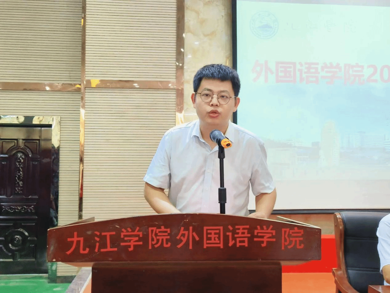 院长周志高代表全体教职员工热烈欢迎2024级新同学。他向大家详细介绍了学院的发展历史、师资力量和学院近年来取得的成绩。他鼓励新同学们在接下来的学习中,刻苦钻研本领,提升专业技能,通过语言去了解世界,努力成为文化交流的使者,努力做到“外显精气神,语藏锦绣文”。学院的教师队伍能够为同学们的成长提供坚实的保障。近年来,外院师生在省级以上比赛中荣获 160 多项奖项,英语专业在 2021 年获得四星级专业评价,在2023年通过教育部师范认证。