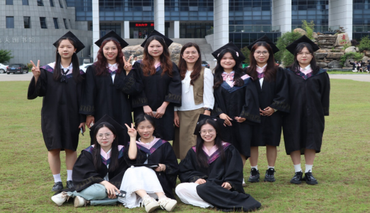 与毕业生合影
