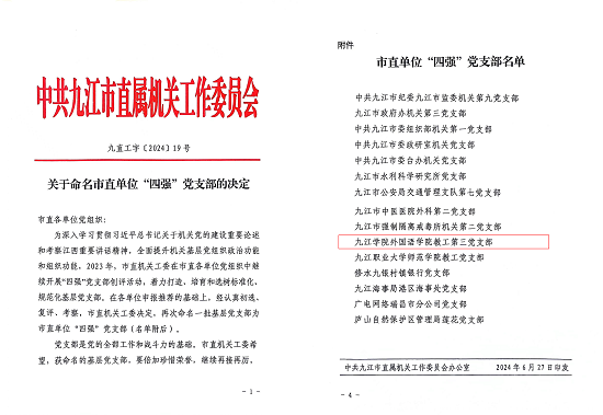 在中国共产党成立103周年之际,我院教工第三党支部被评为市直机关“四强”党支部。