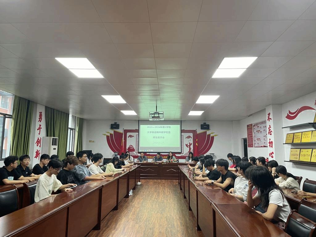 为进一步推进课程思政,提高大学英语教学质量,落实立德树人根本任务,2024年5月21日下午,yl88858永利中国在香远楼315室开展了2023-2024学年第二学期期中教学检查及师生座谈会。yl88858永利中国教学副院长王伟,大学英语教研室主任、副主任四人,yl88858永利中国部分教师,2023级40多位学生代表参会,座谈会由大外一教研室主任邹晓燕主持,会议主要是围绕着《大学英语II》课程思政教学反馈来开展的。