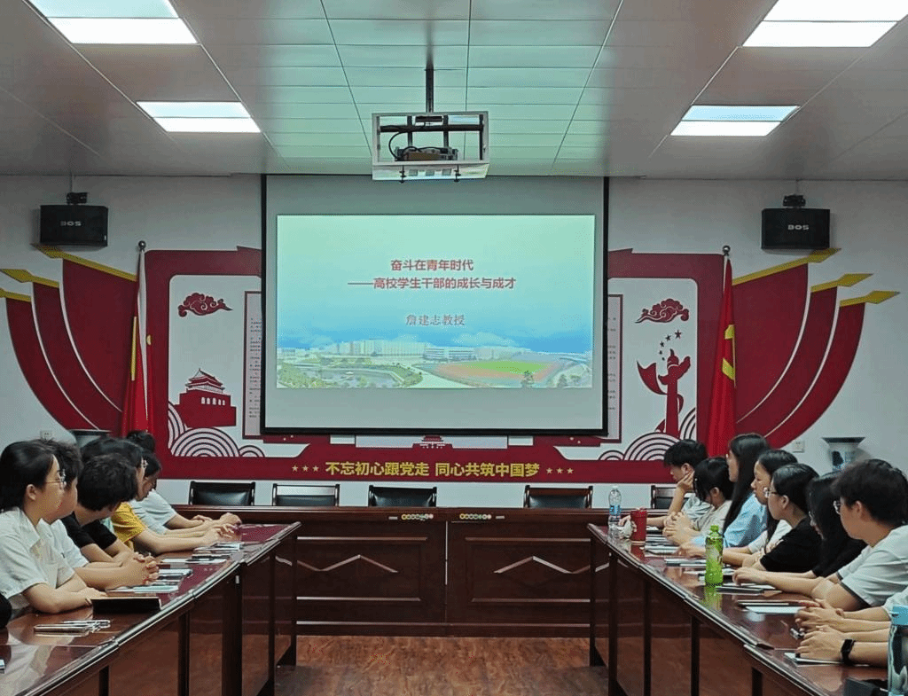 讲座中,詹教授还就奉献精神、大局观、团队意识、服务意识、认同感和执行力等方面深度解读了新时代学生骨干应具备的素质能力,并就目前学生骨干群体中存在的不足进行分析和解惑,希望同学们注重实践和积累,不断完善自我、提升自我。