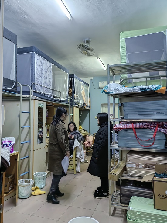 排查过程中发现了个别宿舍存在离开宿舍未关门、插线板有充电器未断电的情况,辅导员和宿舍管理员老师第一时间通知学生进行整改。