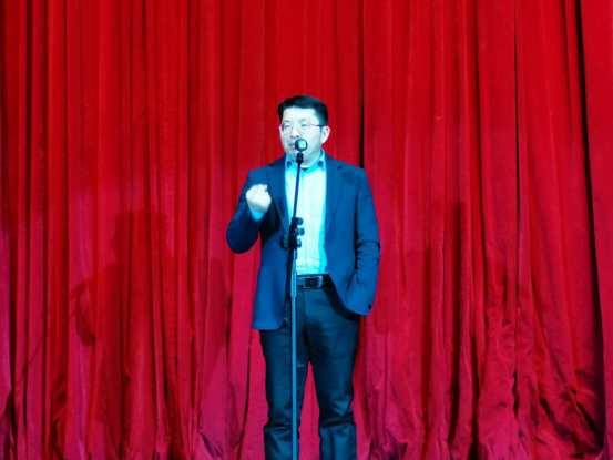 周志高院长上台进行全英文致辞。他真挚欢迎所有来到yl88858永利中国的新生,希望这场晚会能为全体师生的记忆添一笔难忘色彩,灌注前行力量,深耕外院情怀。周院长风趣的语言与流利的致辞引起掌声雷动。