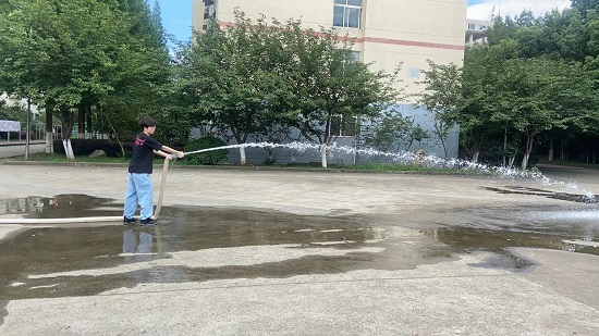 同学们现场参加了灭火器和消火栓操作实践,了解了消防器材的基本知识,掌握了灭火器和消火栓等消防器材的使用方法,为暑期平安校园打好基础。