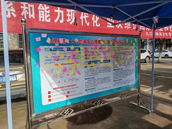 活动伊始同学们和学生会成员聚集在广场上为活动的顺利进行展开了各项相关小游戏,第一个小活动是开心事分享,同学们将写有让自己开心事的纸条贴在宣传板上分享给大家,传播开心快乐情绪,还有情绪垃圾桶活动,让同学们将自己不开心的事情写在纸条上丢进垃圾桶,寓意着那些坏心情也随着纸条一起丢进了垃圾桶,避免同学们消极情绪的发酵与传播,最后一个活动是套圈活动,让同学们通过小游戏释放自己的压力,并且还准备了许多小礼物给同学们。