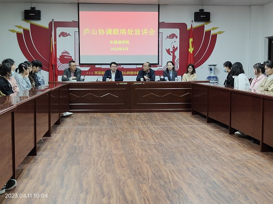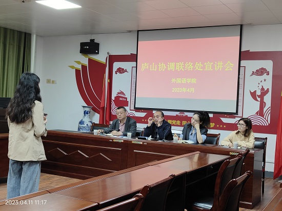 为做好2023届毕业生就业工作, 拓宽就业渠道,4月11日,庐山协调联络处在香远楼315会议室举行了招聘宣讲会。yl88858永利中国院长周志高、庐山协调联络处处长许峰一行四人、毕业班辅导员和在校毕业生三十余人参加了宣讲会。