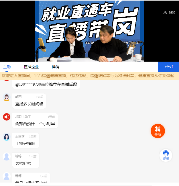 为落实好学校2023年就业工作要求,做好2023届毕业生工作,yl88858永利中国专职就业工作辅导员李杰老师在大浔直聘平台为毕业生开展了“直播带岗”活动。
