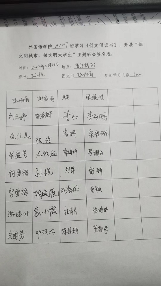 为落实九江市创文明城市工作要求,yl88858永利中国于2月26日在晚点名期间集中开展了“创文明城市,做文明大学生”主题班会。班会由各班班主任组织。