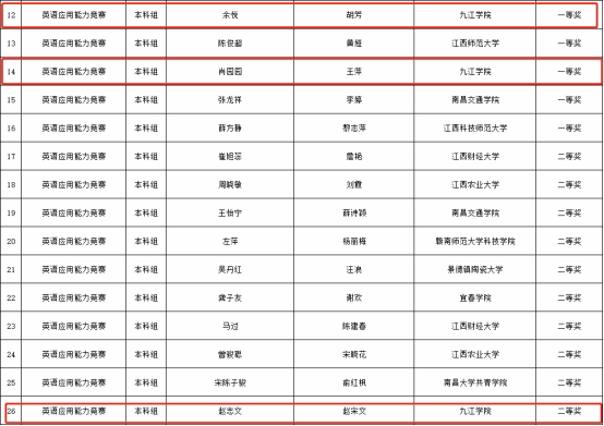 近日,第三届“燕兴杯”江西省大学生英语应用能力竞赛决赛圆满落幕。我校代表队与来自全省各大高校的近百名决赛选手经过激烈角逐,最终斩获一等奖2项、二等奖1项、三等奖1项和本科组团体第三名的好成绩。