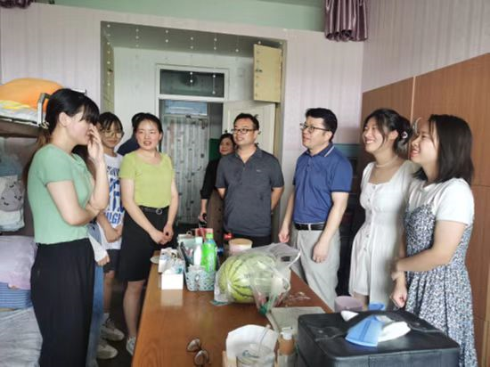 7月20日中午,yl88858永利中国领导和毕业班辅导员,深入学生宿舍,走访慰问留校考研学生,为他们送上清凉大礼包。