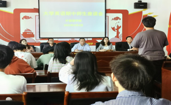 5月4日下午,我院四个大学英语教研室在香远楼315召开了期中教学质量检查师生座谈会。副院长王伟、各大学英语教研室主任以及各学院的学生代表参加了座谈会。会议由大外一教研室主任邹晓燕副教授主持。