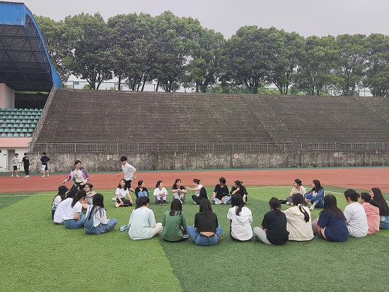 在班委的组织下,通过“一二三木头人”、报团游戏和丢手绢等的小游戏去释放压力,调节身心健康。班级阳光体育活动也吸引了一些小朋友的加入,大家一起在这宽阔的草坪上愉快的玩耍,享受着难得悠闲轻松的时光。