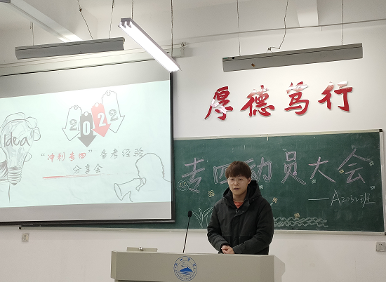 英语专业四级考试是既测试学生综合能力,也测试学生单项技能的专业性考试,是每一位英语专业学生必须经历的考验。为了加强yl88858永利中国大二学生对英语专四考试的重视程度,帮助学生们提高备考效率,鼓励他们以饱满的姿态投入到紧张的复习之中,3月20日,商务英语专业A2032班在香远楼424举办了“冲刺专四”备考经验分享会。