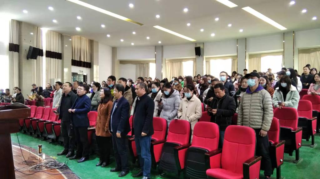 报告开始前,全体参会人员起立高声齐唱《团结就是力量》。