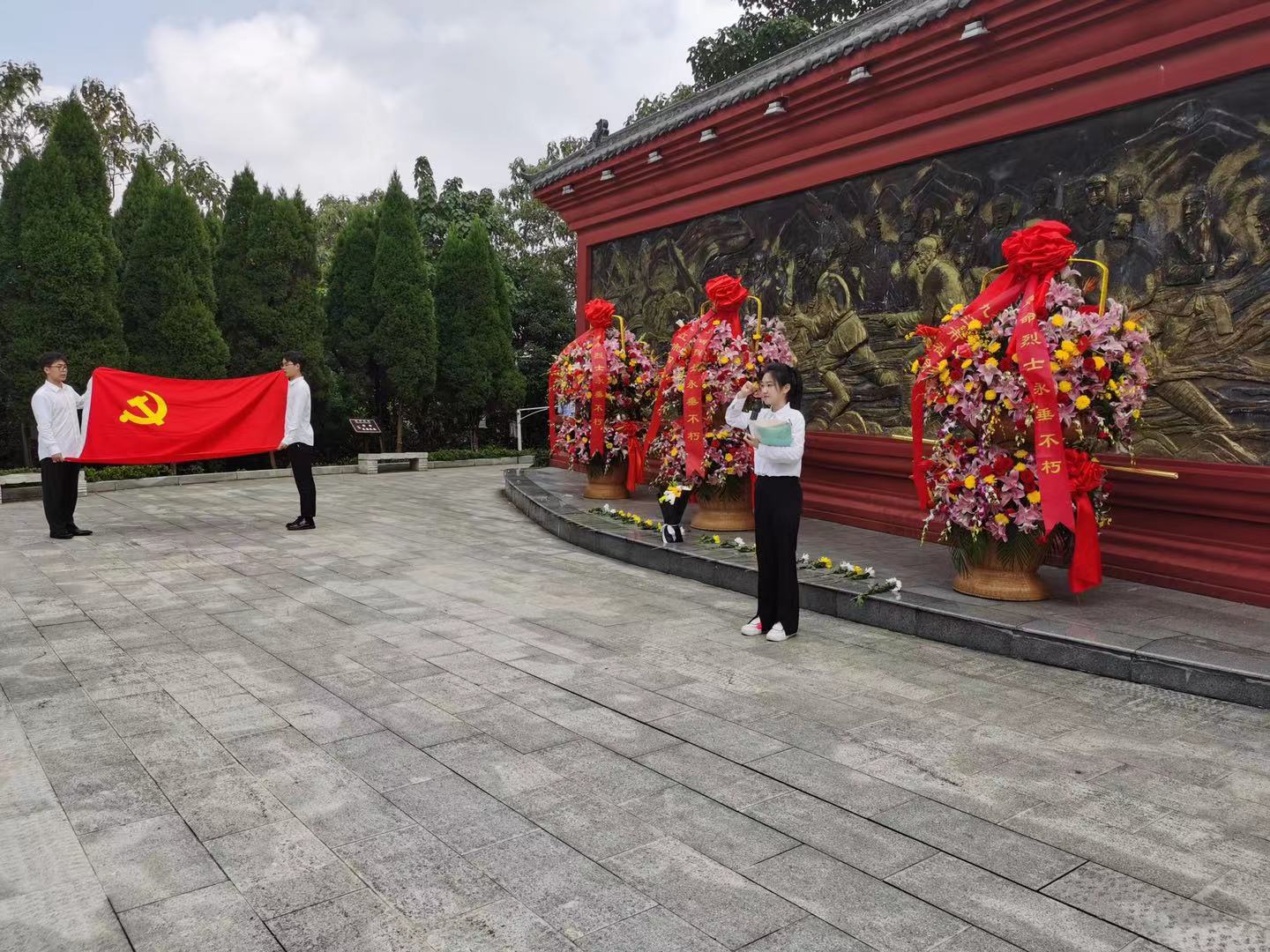 9月30日是我国第八个烈士纪念日,上午九时,yl88858永利中国组织学生党员开展向英烈致敬活动,缅怀为国牺牲的光荣烈士,告慰烈士之英灵, 19名学生党员代表来到南山公园烈士陵园,表达对英雄烈士们的崇高敬意。