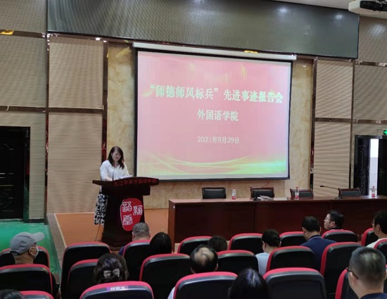 为进一步加强我院师德师风建设,激励广大教职工以德立身、以德立学、以德施教、以德育德,充分发挥优秀教师的典型示范作用,9月29日下午,我院在香远楼三楼报告厅举办“师德师风标兵”先进事迹报告会,刚刚荣获2020年度yl8858永利集团“师德师风标兵”、我院教师章志红老师与全体教职工分享了她的感人事迹。