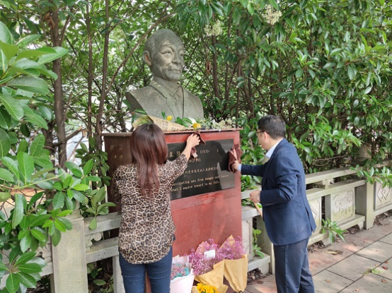 5月24日上午10点,我院党政班子及教师代表一同前往我校袁隆平院士雕像前,沉痛悼念袁隆平院士。罗其娟书记、周志高院长带领教师对袁老雕像周围进行清扫,全体教师献上鲜花,并集体三鞠躬表达对袁老的追思和缅怀。