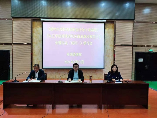 3月31日下午,我院在香远楼三楼报告厅召开全院大会,组织学习师德师风相关文件精神。院领导及全体教职工参加了会议。会议由院党委书记罗其娟主持。