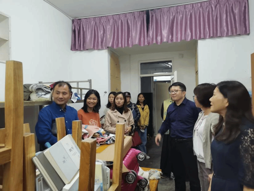 罗其娟强调现在还处于特殊时期,还是要坚持戴口罩、勤洗手,保持室内通风,做好个人防护,保持健康的生活方式,秉持“非必要不外出”的原则,配合学院做好排查登记工作。韩琨一行在探访过程中对每一个同学送去了佳节祝福,并希望同学们尽快适应学校生活,做好充足准备,以饱满的精神状态迎接军训。