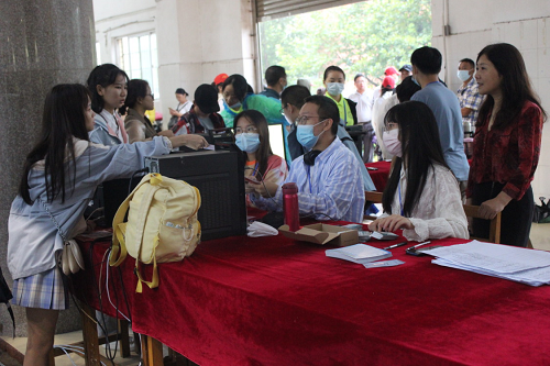 报道现场,工作人员帮助新生解惑答疑,明确入校需要办理的手续。身份审查、报名缴费、安排宿舍、信息登记,工作人员高效的办事效率让每位新生顺利完成报到,得到了陪同的家长的认可和信赖。