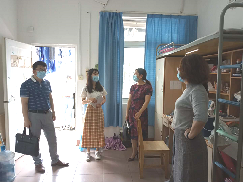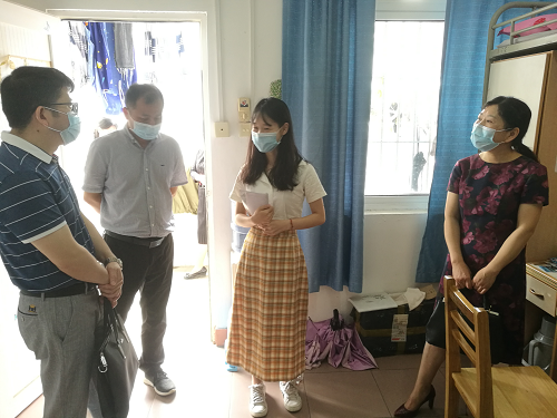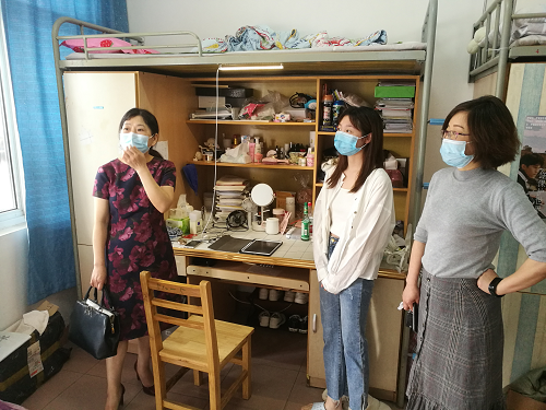 学生是否安全返校是学院关心的头等大事,5月19日晚九点五十分,最后一名17级学生搭上返校的末班车,意味着大三年级学生均平安抵校。为确保返校学生能够健康、安全、有序的学习生活,5月20日,yl88858永利中国院长韩琨、院党委书记罗其娟、院党委副书记彭晓、副院长周志高一行人怀着对学生的牵挂与担心,一大早来到女生宿舍看望慰问返校学生。