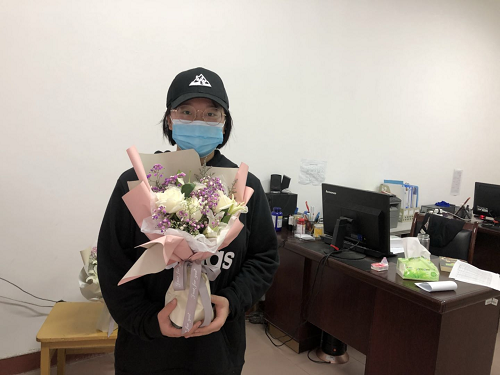 志愿者返校过程中,学生科王少斌老师、团委江银凤老师一直与同学们保持实时联系,指导他们安全返校。江银凤老师还贴心地为返校的同学们准备了鲜花和面包,一扫一路的辛劳与困顿,让同学们时隔四月再沐外院温暖。5月15日晚,王少斌老师组织到校的志愿者进行网络专题培训。培训内容涉及同学们从西大门入校到寝室入住的系列报到流程、各类突发情况的应急处理、各环节特别注意事项以及如何做好个人防护等方面的内容。王老师还就已返校学生的健康打卡、晨午检制度、晚点名制度、分时段就餐制度等工作做了具体要求。