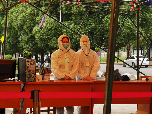 5月16日,32名同学兵分两路,一路在yl88858永利中国党委副书记彭晓的带领下前往学校西门值勤,另一路则奔赴到学生宿舍七、八、九栋值勤。为确保工作万无一失,正式上岗前王少斌老师提前10分钟把大家带到现场进行业务培训。测量体温、行李消毒、身份核验、信息登记、防疫常识普及等工作一样都不能少。志愿者们谨记着彭副书记的叮嘱“既要万无一失做好安全防疫,也要精心安排畅通同学们的回家之路”,工作中不敢有半丝懈怠和马虎,哪怕烈日当头,他们依然坚守。