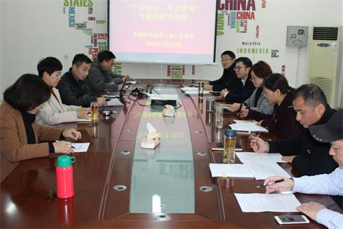 12月13日,教工第八支部在香远楼219会议室召开了“不忘初心、牢记使命”主题教育专题组织生活会和民主评议党员大会,院党委班子成员以普通党员的身份参加了专题组织生活会。