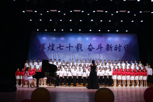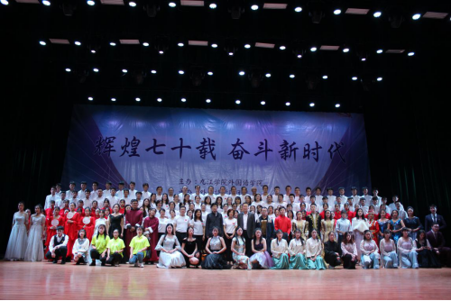 晚会在教职工与香远雅集声乐协会共同合唱的《我和我的祖国》落下帷幕,他们用嘹亮的歌声表达外院师生们对伟大祖国的祝福与热爱,致敬祖国母亲。