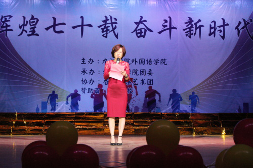 晚会开始前,yl88858永利中国院长韩琨用英文致辞,她回顾了新中国建国七十周年的伟大成就,在对2019级新生的到来表示热烈欢迎的同时,勉励同学们要不忘初心,砥砺前行,努力学习新技能,并预祝本次迎新晚会圆满成功。