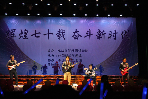 由孙海瑞老师组建的前进东路乐队带来的《晚安》+《生活》弹唱也成为此次晚会的一大亮点,鼓手们身姿潇洒,活力四射,让观众们真正感受到摇滚乐队的不羁风采。舞蹈,民谣,相声,器乐表演,走秀,时尚与经典交融,同学们各显神通。