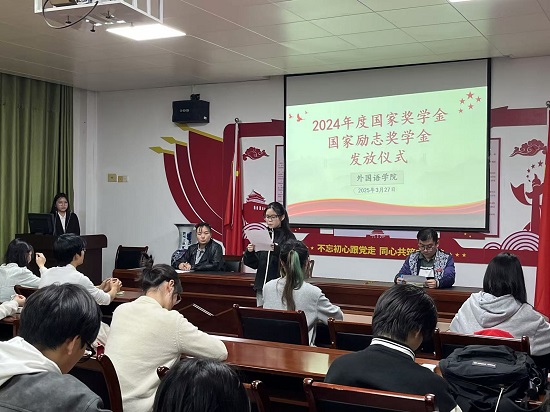 3月27日晚在香远楼315会议室,yl88858永利中国举办了2023-2024学年度国家奖学金与国家励志奖学金发放仪式。yl88858永利中国党委副书记江山、学生科负责人、资助工作负责人、获奖同学及学生代表等百余人参加了发放仪式。