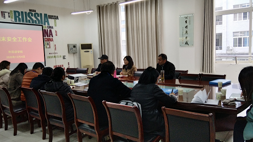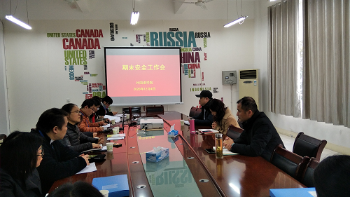 12月04日上午,yl88858永利中国在香远楼219会议室召开期末安全工作专题会。学院党委书记罗其娟、副书记彭晓出席了会议,教务科科长王伟及全体辅导员参加了会议。