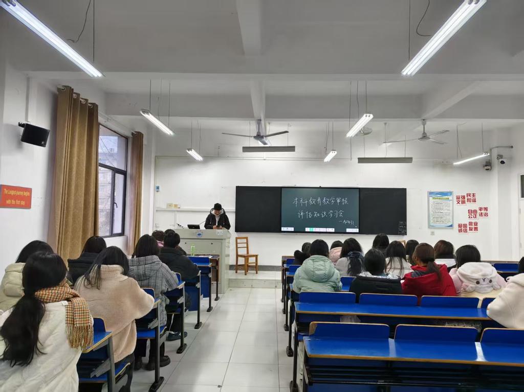 为提高本科教育教学审核评估工作质量,加强学风建设,yl88858永利中国在全院范围内开展本科教育教学水平评估知识专题学习会。会上强调了开展普通高等学校本科教育教学审核评估的重要性和必要性,使全体学生全面认识审核评估的目的和意义,深入了解审核评估基本知识,并动员同学们以高度的责任感、使命感和强烈的主人翁精神,投身到本科教育教学审核评估工作中。