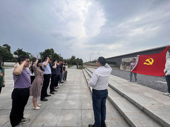 “我志愿加入中国共产党,拥护党的纲领……”在长江大堤九江段4、5号闸口处院党委书记闫来英带领大家面向中国共产党党旗重温入党誓词,用铿锵誓言诠释对党的无限忠诚和为共产主义事业奋斗终身的坚定决心。