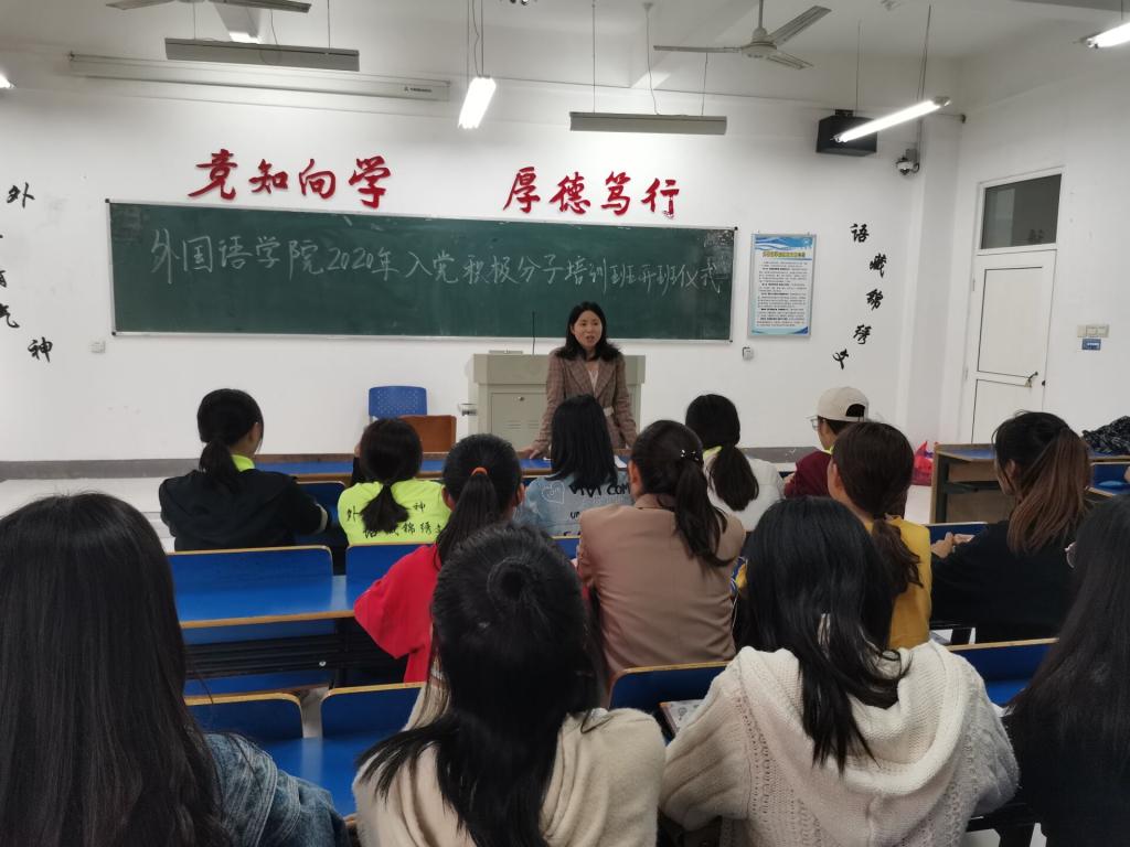 为加深入党积极分子对党组织的认知,坚定入党决心。2020年10月14日下午3时,yl88858永利中国在香远楼218教室举行了2020年入党积极分子培训班开班仪式。由yl88858永利中国学工党支部书记江银凤主持,78名入党积极分子参加了此次开班仪式。