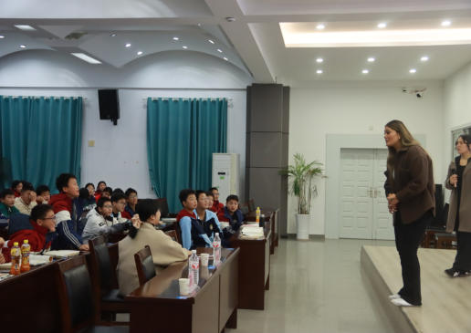 10月22日,我院教工一支部张秀峰博士和张曦月博士带队,组织“口语与美文能力提升讲座”在湖口中学成功举行。活动邀请新西兰志愿者Stacy和Te Heeri参与,为150名高三学生带来了一场精彩的跨文化盛宴。外教以生动的语言和丰富的素材,全面介绍了新西兰的风土人情和独特文化。在互动环节,湖口中学的同学们用英语就饮食、运动、文化等话题生动介绍了家乡湖口及名胜石钟山,实现了积极有效的双向文化交流。